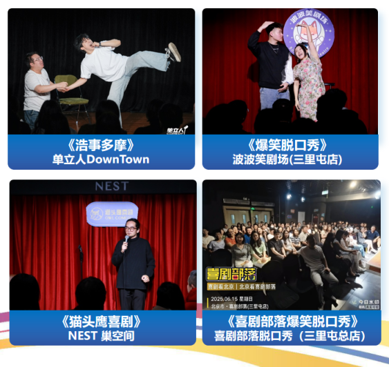单立人DownTown、波波笑剧场(北京三里屯店)、喜剧部落脱口秀(三里屯总店)等脱口秀剧场打造潮流地标解压栖息地,常态化开展脱口秀演出。