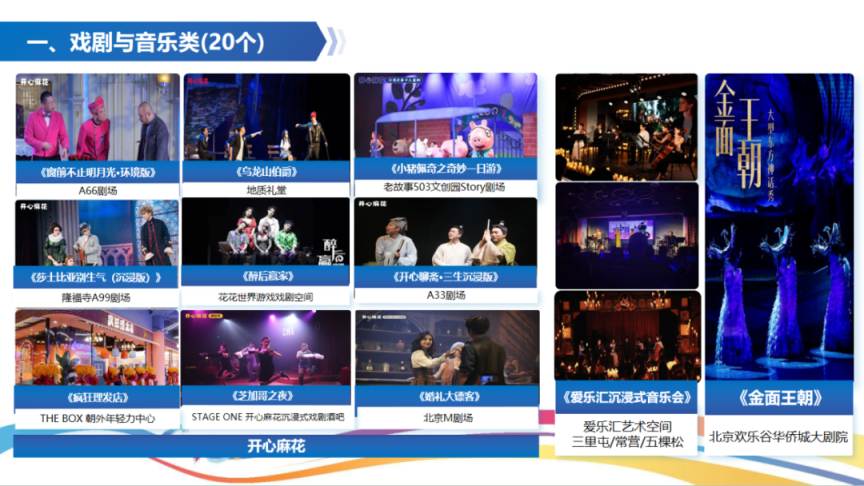 戏剧与音乐类驻场演出项目20个